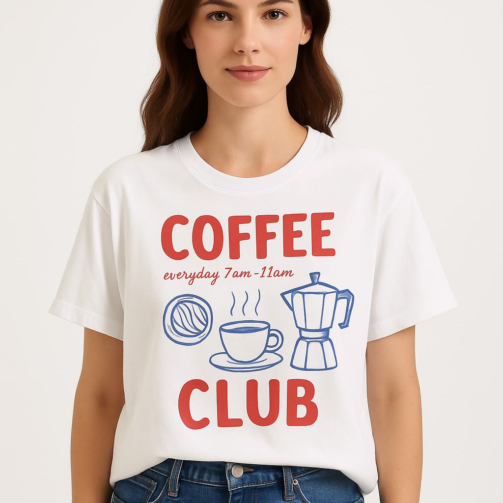 Camiseta en algodón 100% de alta suavidad, con estampado digital en tintas eco-friendly que resiste lavados sin perder color. Corte oversize con mangas relajadas, perfecta para combinar con jeans, shorts o joggers. Tan ligera como ese primer sorbo que reconforta el alma.