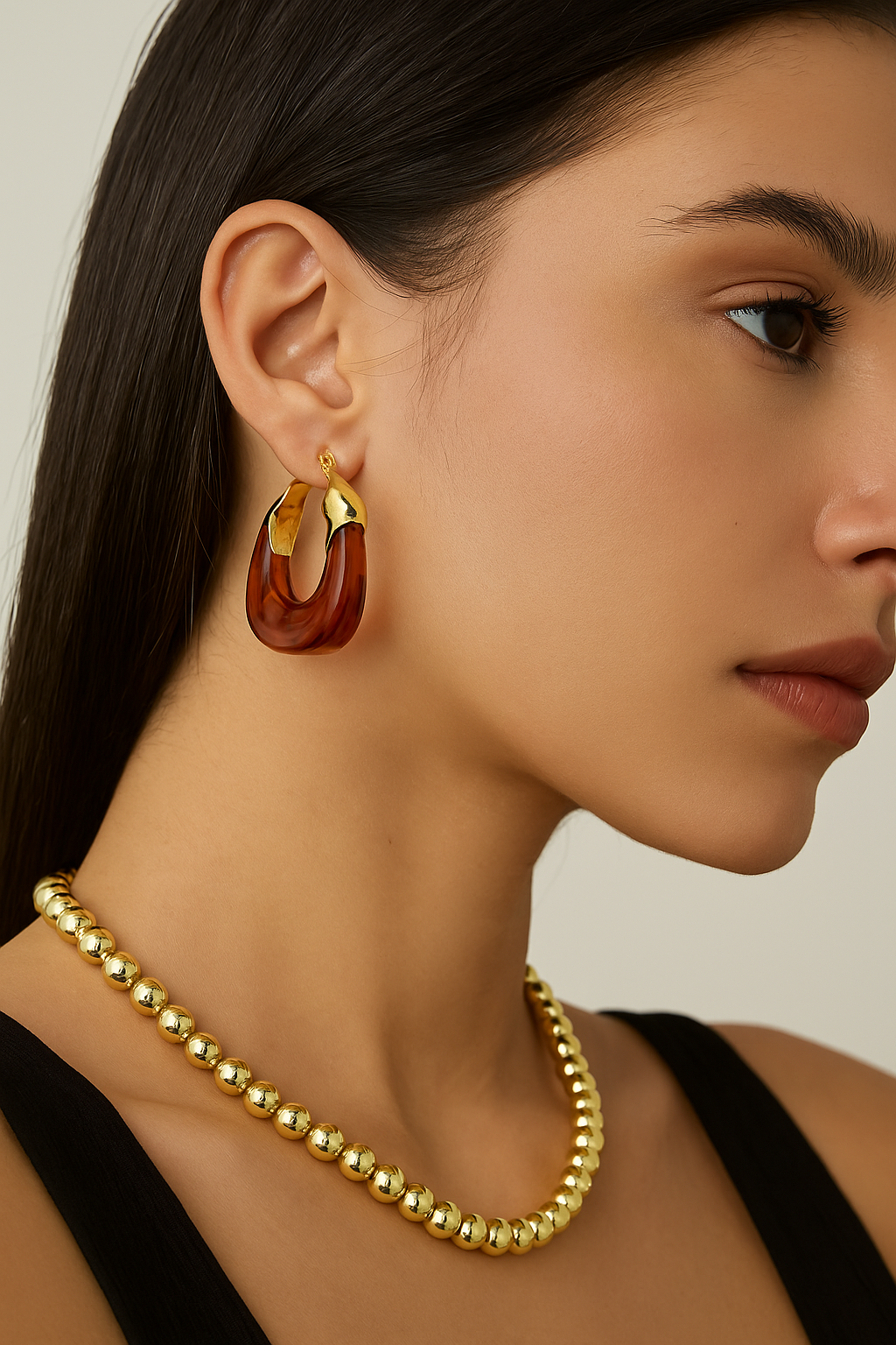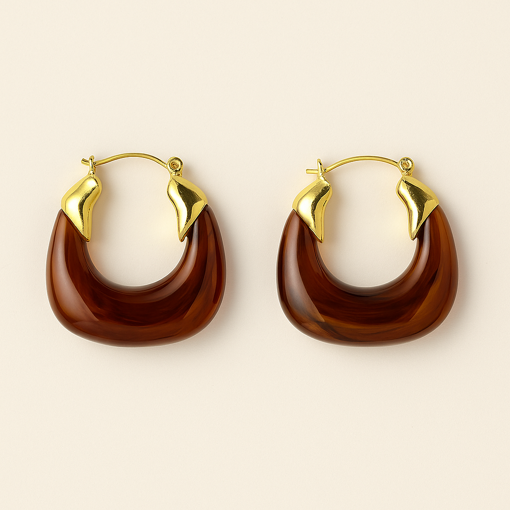 Estos zarcillos combinan la calidez del ámbar con un delicadotoque dorado, evocando atardeceres suaves y momentos de calma. Su diseño curvo y orgánico los hace únicos y elegantes, perfectos para resaltar tu rostro con sofisticación natural. Livianos, versátiles y con mucha personalidad, son elcomplemento ideal para expresar estilo con sutileza y carácter.