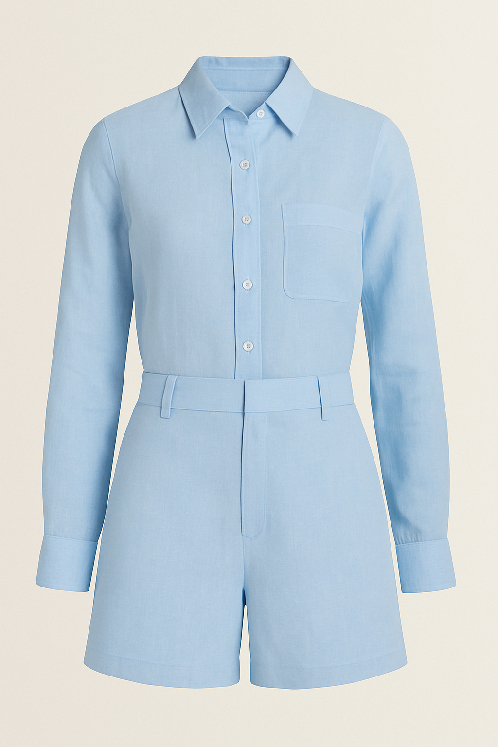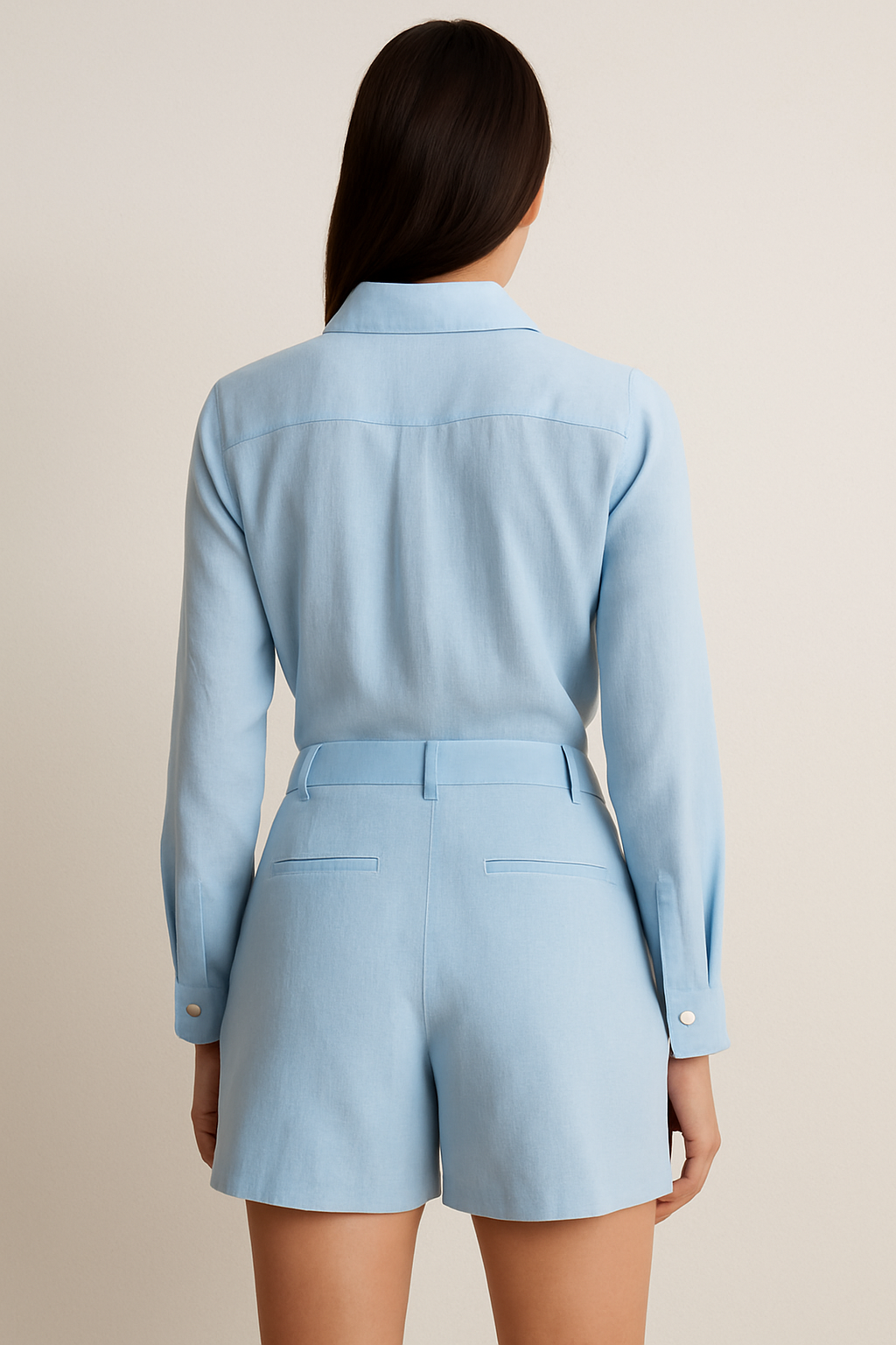 Brisa Serena es un set compuesto por camisa de manga larga y bermuda de tiro alto, confeccionado en una tela suave y ligera de textura tipo lino que evoca días tranquilos y cielos despejados. Su tono azul claro transmite calma, mientras su corte estructurado realza la figura con naturalidad. Perfecto para un paseo al atardecer, una tarde entre amigas o simplemente para sentirte cómoda y hermosa.