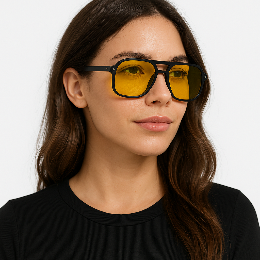 Despertar son los lentes de quienes iluminan su propio camino. Con cristales amarillos vibrantes y una montura negra que impone, esta pieza simboliza claridad mental, energía positiva y una mirada que no se deja apagar. Ideales para días nublados o almas que buscan el sol dentro de sí. Son ese toque de luz que completa tu estilo y enciende tu autenticidad desde adentro hacia afuera.