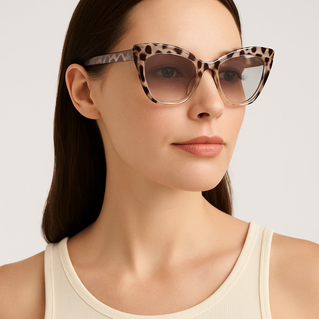 Los lentes Fiera son una declaración de autenticidad. Con su marco estampado en animal print y fondo transparente, combinan fuerza, glamour y ese instinto salvaje que muchas veces se esconde bajo una sonrisa suave. Son ideales para esos días en los que tu alma quiere rugir pero con estilo.