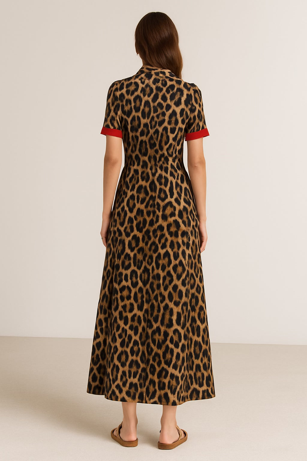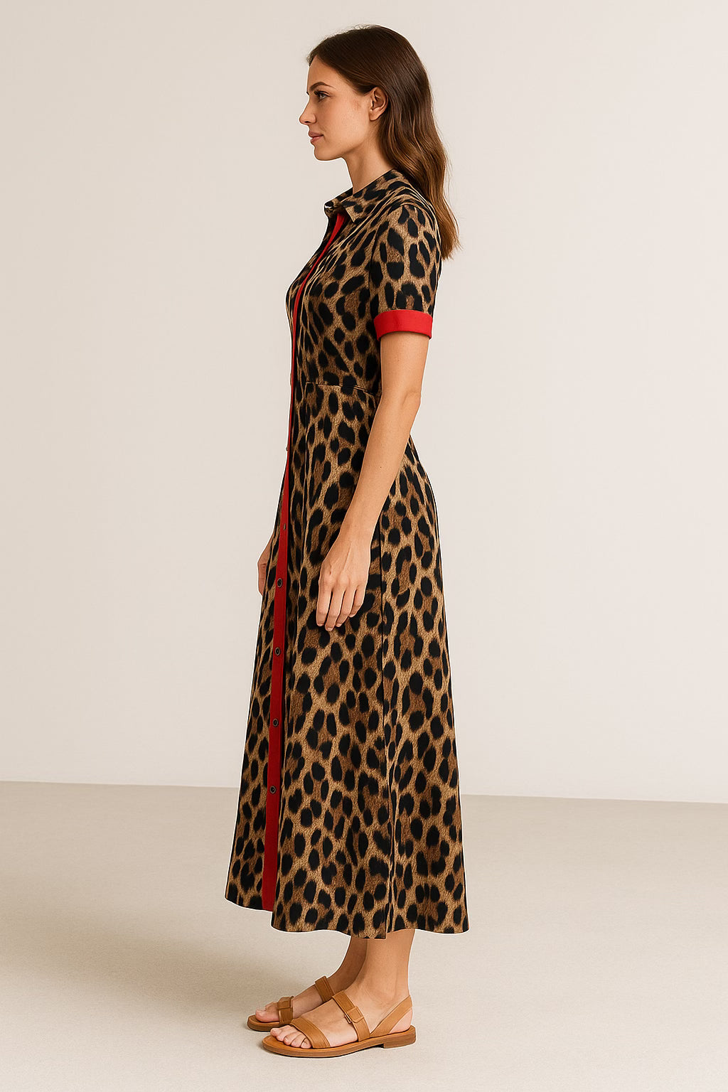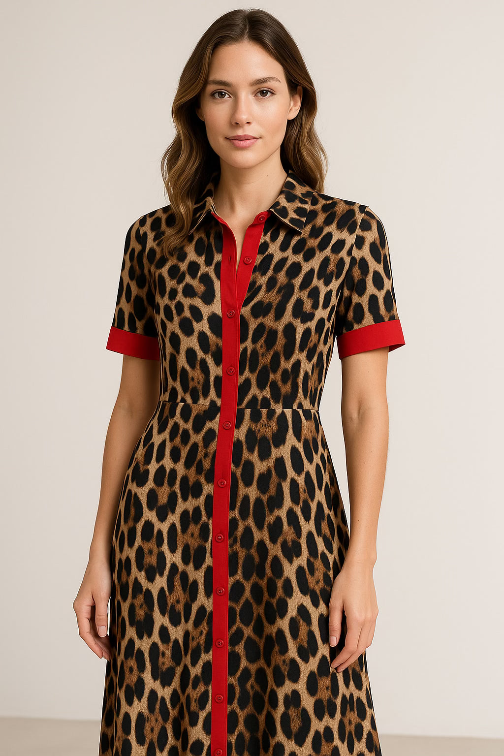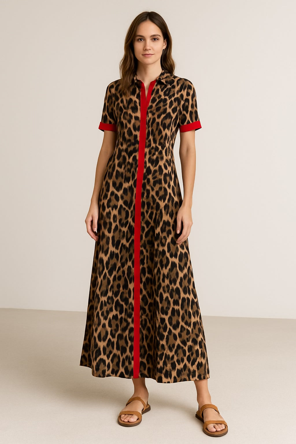 Atrévete a expresar tu poder interior con elegancia. Fiera Serena es un vestido camisero tipo maxi que combina el instinto felino con la calma de quien se conoce y se acepta. Su estampado animal print representa la fuerza que llevas dentro, mientras que los detalles en rojo pasión hablan de una mujer decidida, que vive con propósito y autenticidad. Ideal para mujeres que caminan con garra, pero con el alma en equilibrio.
