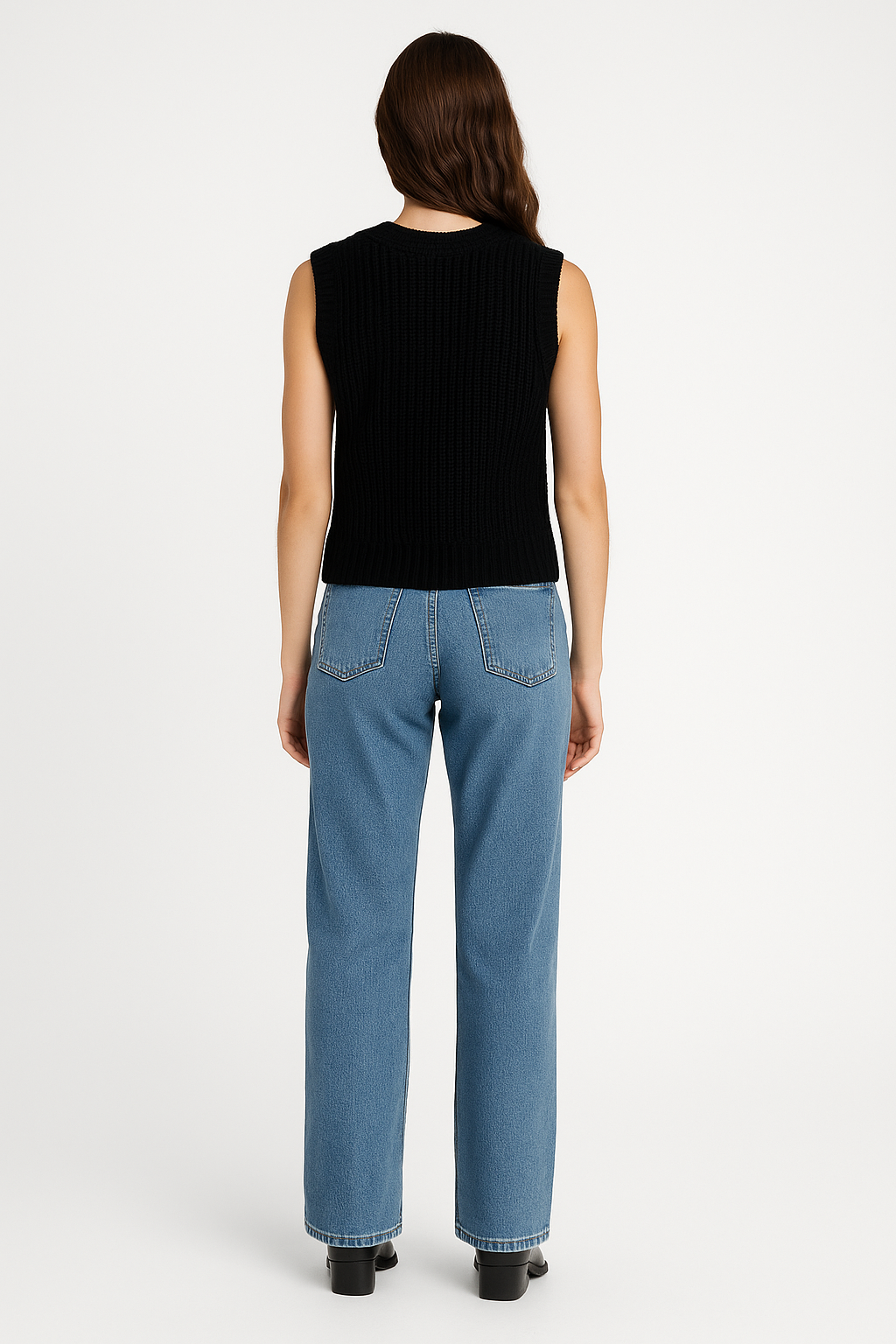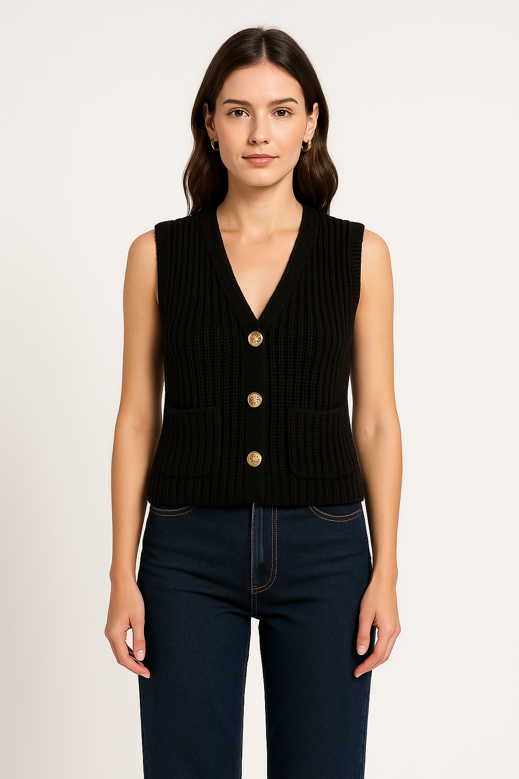 Ideal para acompañar unos jeans modernos de corte ancho, esta pieza combina lo clásico del tejido con un espíritu contemporáneo. Dos bolsillos delanteros agregan un toque funcional sin restar elegancia. Cada hebra cuenta una historia, cada punto una intención.