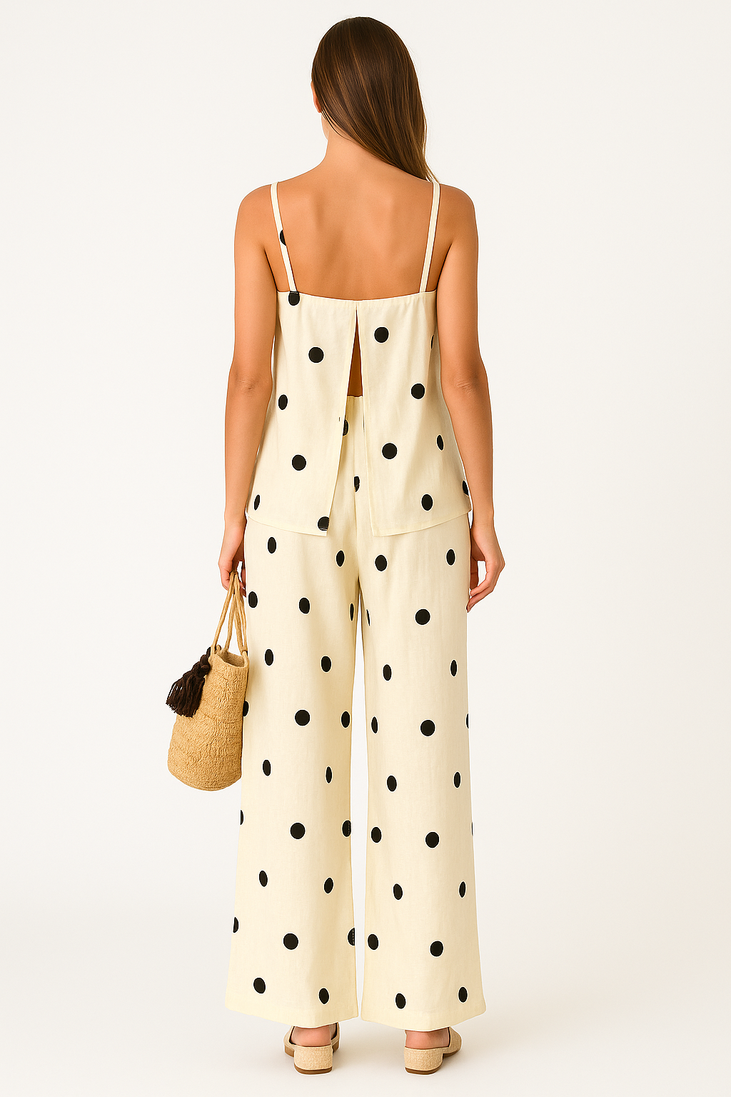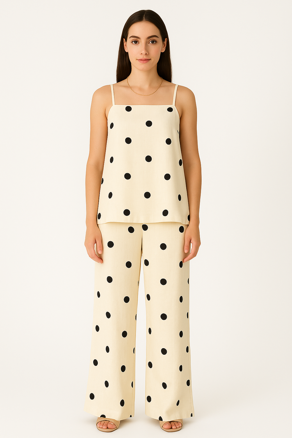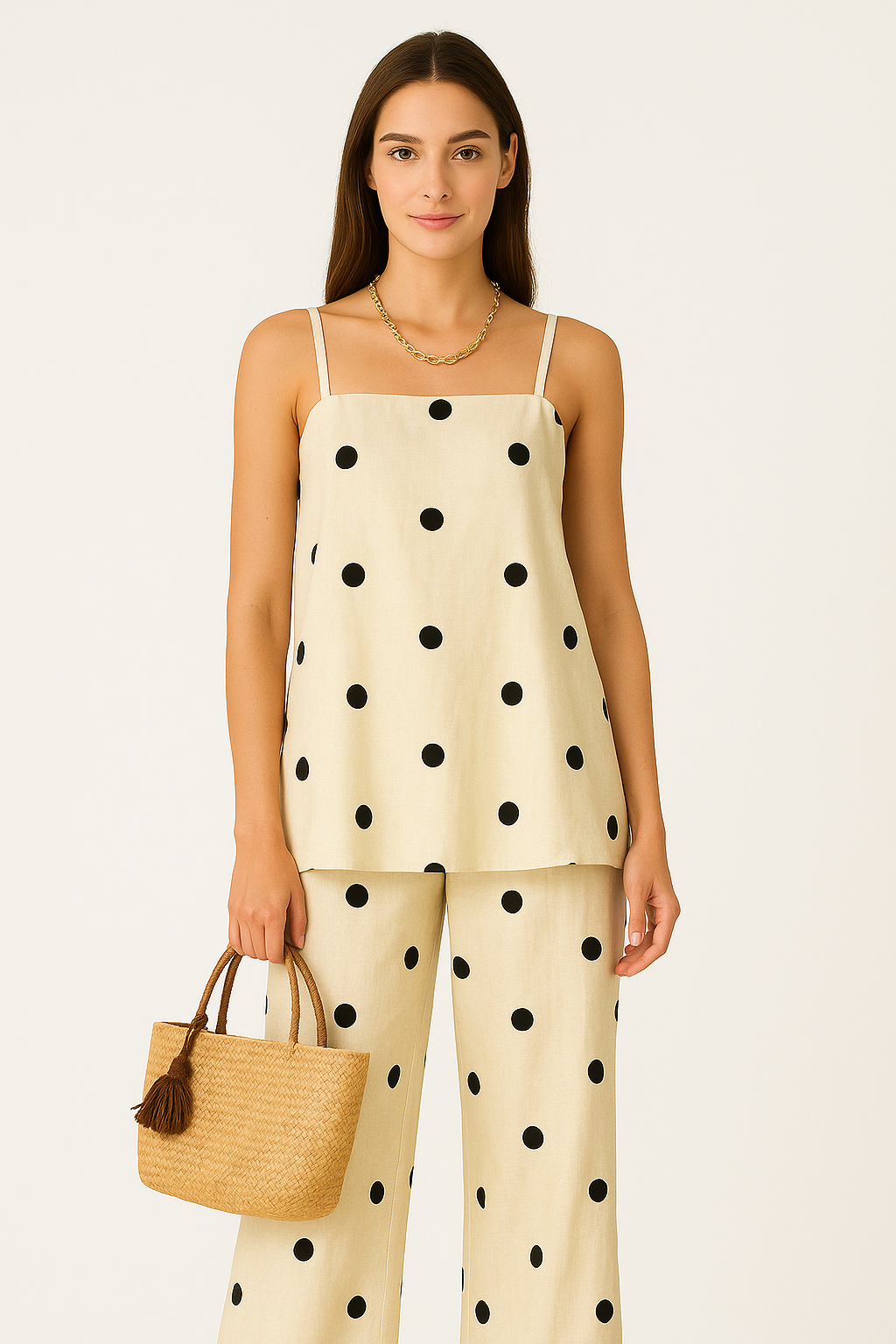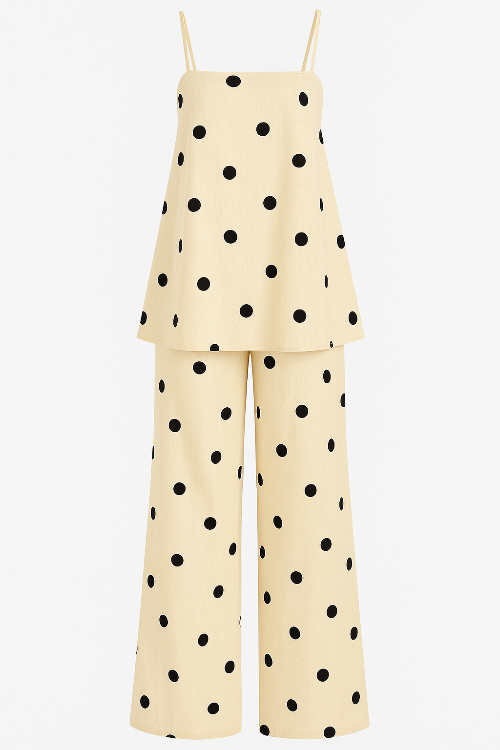 Con un guiño juguetón y una vibra relajada, Alegría Serena es ese set que te acompaña cuando necesitas libertad, ligereza y un toque de personalidad. Su estampado de lunares negros sobrefondo beige nos recuerda que la elegancia también puede ser divertida, y que no hay nada más poderoso que sentirte cómodasiendo tú.